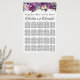 Beautiful purple and pink watercolor floral wedding seating chart. Deep plum roses and blush pink flowers are nestled in sage green leaves. Please Find Your Seat and the bride and groom names are at the top. Very easy to change the template text to your guest names.