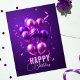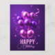 Celebrate in style with this vibrant and festive customisable birthday postcard! The design features a stunning array of purple and pink balloons, some with elegant stripes, floating against a rich purple background. The balloons are surrounded by playful confetti and curling ribbons, adding a touch of joy and excitement to the scene. At the bottom of the postcard, the cheerful message "HAPPY Birthday" is prominently displayed in a mix of bold and script fonts, creating a dynamic and eye-catching effect. The text is fully customisable, allowing you to add a personal touch and make this postcard truly unique for your special occasion. Whether you're sending birthday wishes to a friend, family member, or colleague, this postcard is sure to bring a smile to their face and make their day extra special.