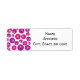 These return address labels have a mid-century modern design of purple and pink circles with white starbursts in them, all on a field of white.