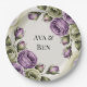 Purple and Sage Green Roses Watercolor Wedding Paper Plate