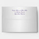 This purple and silver damask A7 envelope matches the wedding invitation shown below and is designed to fit the 5x7 invitation and thank you card. Customise it to have your own return address on it.