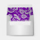 This purple and silver damask A2 envelope matches the wedding invitation shown below and is designed to fit the reply card and small thank you card. Customise it to have your own return address on it.