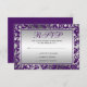 Elegant purple and silver wedding RSVP response cards. A modern faux silver swirl damask pattern. Easily customise for your wedding day. Flourish by Mujka Design. Designs are flat printed illustrations/graphics - NOT ACTUAL SILVER.