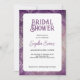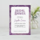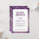 The intricate Damask pattern, reminiscent of opulent tapestries from a bygone era, graces the edges of the invitation in a rich blend of purple and silver hues. This classic design choice symbolises royalty, nobility, and timeless beauty, making it the perfect choice for a bridal shower that exudes grace and sophistication.