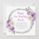 Beautiful birthday party card with a purple and silver faux glitter frame with floral flower arrangements. The words can be changed to suit your own details or requirements