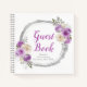 Beautiful birthday party guest book with a purple and silver faux glitter frame with floral flower arrangements. Perfect for a birthday party. The words can be changed to suit your own details or requirements