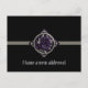 Beautiful purple flowers in a grey Gothic frame is placed on a grey band against a black background on this beautiful change of address postcard.. Very beautiful and elegant.