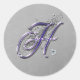 Purple and Silver Glitter Fancy Script Monogram H Classic Round Sticker