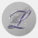 Purple and Silver Glitter Fancy Script Monogram L Classic Round Sticker