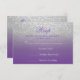 🥇AN ORIGINAL COPYRIGHT ART DESIGN by Donna Siegrist ONLY AVAILABLE ON ZAZZLE! RSVP. Purple and Silver Glitter. Matching Products Available - 📌If you need further customisation, please click the "Click to Customise further" or "Customise or Edit Design" button and use our design tool to resize, rotate, change text colour, add text and so much more. ⭐This Product is 100% Customisable. Graphics and / or text can be added, deleted, moved, resized, changed around, rotated, etc... ⭐99% of my designs in my store are done in layers. This makes it easy for you to resize and move the graphics and text around so that it will fit each product perfectly. 📌 (Please be sure to resize or move graphics if needed before ordering) You can also "TRANSFER DESIGN" on other Zazzle products and adjust the design to fit most of Zazzle items. (button is down on the right side of the page) This design is made with high resolution vector and/or digital graphics for a professional print. 📌NOTE: (THIS IS A PRINT. All Zazzle product designs are "prints" unless otherwise stated under "About This Product" on the left side of this page) The design will be printed "EXACTLY" like you see it on the screen and on the product...so please make sure when you do your changes on the resizing of any of the graphics or text that it fits in the areas correctly and that your spelling and wording is how you like it to be in size, colour and font. If you have any questions about the "DESIGN ONLY" or need help please contact me at ✉ siggyscott@comcast.net or visit my store link: https://www.zazzle.com/store/designsbydonnasiggy (Copy and Paste) I'll be happy to help. 📌 ALL OTHER QUESTIONS (shipping, refund, the printing is not correct, the product itself, etc...) please contact Zazzle or the Maker ⭐DIRECTLY⭐. Thank you for the support and stopping by my store - DesignsbyDonnaSiggy. © Donna Siegrist⭐⭐⭐ ZAZZLE promises 100% satisfaction. If you don't absolutely love it, Zazzle will take it back! ⭐⭐⭐ 1-888-8ZAZZLE (1-888-892-9953) Phone hours: Mon - Fri: 9AM - 5PM PT (12PM - 8PM ET)