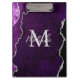 This clipboard features an elegant and glamourous agate marble background with geode gemstone detailing and faux silver glitter accents. The monogram combines handwritten script and modern sans serif fonts for a classy and sophisticated look. This will make the ideal gift as it can be customised with a name and initial. The deep purple hues make it perfect for autumn fall and winter.