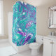 Turquoise, purple and teal pour painting cells marble like swirls abstract art shower curtain.