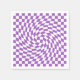 Purple and White Checks Chequered Chequerboard Pattern. Purple or violet and white coloured chequered pattern wave. Warped chequered pattern. Modern and trendy design, waved pattern. Distorted squares.