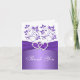 This purple and white floral wedding thankyou note card has a PRINTED purple ribbon with a pair of PRINTED glitter and diamond jewels joined hearts on it that matches the wedding invitation shown below. You can also select the 5x7 size if you need something larger. ***PLEASE NOTE that if you change the font or size of the font, it may alter how your card prints. It will print the way you see it on your monitor, so if you have alignment issues, or sizing problems, please contact me for help. I will not see your card once you order it, and Zazzle will NOT edit anything (typos, alignment, etc.). If you require assistance or would like any other matching items, please email your request to niteowlstudio@gmail.com.