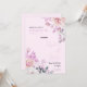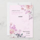 Introducing our beautiful and romantic floral engagement party invitation in a soft and delicate pale pink colour. This invitation features a stunning floral design in shades of peach, white, and purple, accented with greenery in the top right and bottom left corners. The text is elegantly set in a combination of black and light purple, complementing the colours of the flowers.