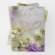 Purple and white flowers on lace wrapping paper sheet