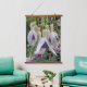Decorate your living space with this vertical, hanging wall tapestry with wooden tops that features a photo image of hanging, purple Fuchsia flowers with white sepals. A lovely, floral design!