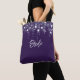 The focal point of this tote bag is the word "Bride," exquisitely presented in a beautiful script font. This declaration of your special role on this momentous occasion is elegantly adorned against the dark purple background, creating a striking and captivating visual.