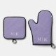 Purple and White | Modern Monogram Oven Mitt & Pot Holder Set
