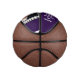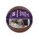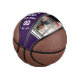 Purple and White Personalised Photo Mini Basketball or Your COLORS and TEXT or Delete. You, or CALL Designer Linda: 239-949-9090 EST can CHANGE the Purple Background and White Text to your Basketball Team Gifts COLORS. You can delete any text or the basketball player picture to expose a silver coloured basketball player in a layup shot pose.