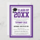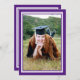 This Purple and White Photo Graduation Party Invitation is a great way to celebrate the high school or college graduate. Personalise this with the name, school, year, party details and the graduate's photo on the back. This invite features bold typography in purple school colours with a purple and white border.