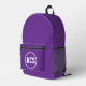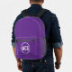 For high school and college students! This backpack is perfect to hold text books and more and features the school colors purple and white along with school letters printed in white block letters inside a white bordered circle on a purple background. Edit and replace school letters with your own.