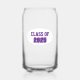 Trendy can glass for the school grad that features school colours of purple and white, with class year printed in bold, purple lettering on a white oval background. Great for graduation and class reunion parties. Edit class year with your own as desired.