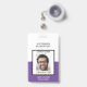 Purple and White Photo School Name Badge. Teacher, Administrator. Customise.