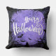 Purple and White Simple Happy Halloween Throw Pillow