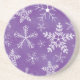 Drink Coaster with a cute snowflake illustration pattern in purple and white, perfect for christmas and winter time.