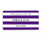 Purple and white stripe wedding water bottle label