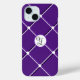 This cute phone case features purple and white stripes with a calligraphy initial.
