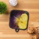 Safely handle baking trays, cookie sheets and muffin tins from the oven with this pot holder with black trim that features the photo image of a purple and yellow coloured, bearded Iris bloom. A lovely, floral design! Select your pot holder backing style.