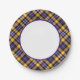 Purple and Yellow Gold Sporty Plaid Border Paper Plate