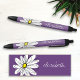 Purple and Yellow Whimsical Daisy Custom Text Black Ink Pen