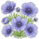 Blue-purple anemone flowers with detailed petals and lush green foliage. Ideal for floral design, greeting cards, art prints, and nature-themed projects with a calm, colourful vibe.