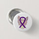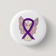 Awareness pin features the painting of a purple awareness ribbon angel on a custom button pendant. The purple awareness ribbon colour shows support for Pancreatic Cancer, Crohn's Disease and Colitis, Alzheimer's Disease, Anti-Gay Bullying (Spirit Day), Cancer Survivor (All Kinds), Domestic Violence, Lupus, Sjögren's Syndrome, Chronic Pain, Leiomyosarcoma, Arnold-Chiari Malformation, Migraines, Cystic Fibrosis, Retinitis Pigmentosa, and Fibromyalgia, to name a few. Purple awareness angel ribbon art lapel pins or buttons can be customised with personalised messages to make great cause buttons for fundraiser pendants for cancer or other causes, awareness pin gifts, or other special pendant events or awareness lapel pin for cause's occasions.