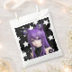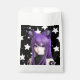 Cute black and purple anime girl with fox ears headband and starry background birthday favour bag.