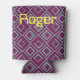 This can cooler has an art deco design of diamonds and half-diamonds in aqua on a field of purple. Like this design but want different colours? Message me.