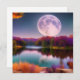 Purple and orange autumn foliage Lakeside under a Harvest Moon