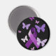 A purple awareness ribbon with butterflies: Purple is for: Alzheimer's Disease awareness Arnold Chiari Malformation awareness Childhood Hemiplegia and stroke awareness Crohn's and Colitis Awareness Campaign Cystic Fibrosis awareness Domestic Violence Awareness Campaign Fibromyalgia awareness Hidradenitis Suppurativa Awareness Ribbon Lupus awareness of Pancreatic cancer awareness Spirit Day and victims homophobia Sarcoidosis awareness Workers' Memorial Day