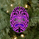 This symmetrical purple and black mask design is inspired by the art of the Aztecs. A shadow falls onto the deep violet background making the design appear to float just above the surface of the ornament. With it’s mouth slightly open and eyes almost closed, this Aztec mask has a stylish look of ancient wisdom.