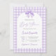 Purple Bow Baby Shower Neutral invitation with bow, lavender gingham baby shower invitation