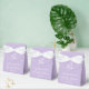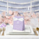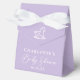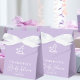 This custom pretty pastel purple baby shower favour box features elegant minimalist white typography below a cute rocking horse toy. Modern, simple script favour boxes for a baby shower.