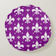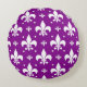 Purple Background Fleur-de-lis Pattern Design Round Cushion