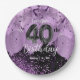Purple Balloons and Glitter 40th Birthday Paper Plate
