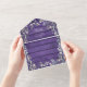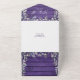 All in one wedding invitation features a beautiful floral greenery cascade, elegant typography, and monogram initials on a background of rustic purple barn wood panels. The invitation includes a perforated RSVP card with your wedding website QR code. Designed by Thisisnotme©