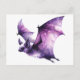Purple Bat Flying Watercolor Art Postcard