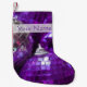 Stylish stocking featuring a collection of glittering purple and silver Christmas baubles. A customisable design for you to personalise with your own text, images and ideas. Image created using an original photograph and digital techniques.
