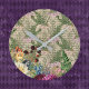 Purple Berries and Roses on Newsprint Ephemera Round Clock